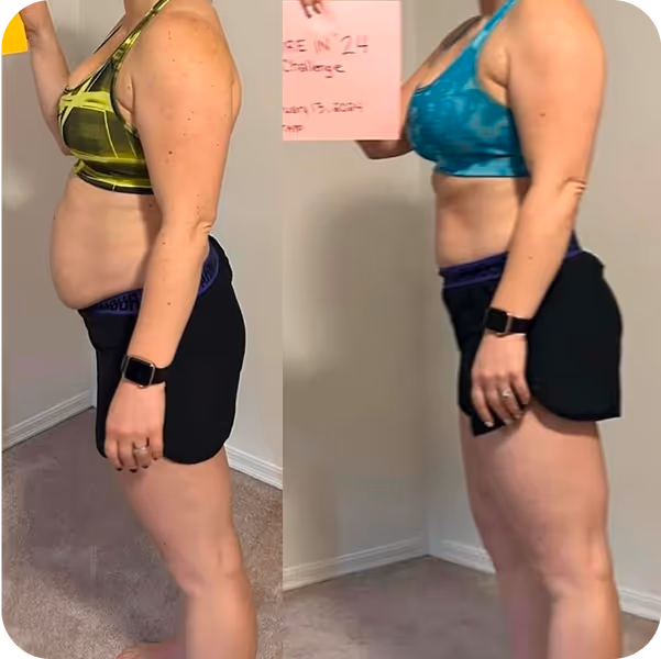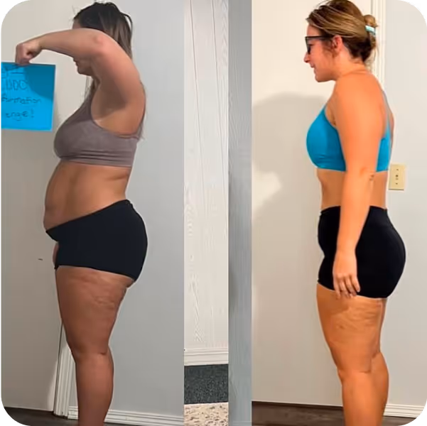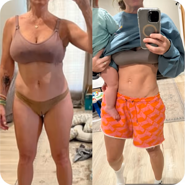 "It was exactly what i needed. I thought that I would just sneak around in the back and get my work done, but when I saw how immediately open everyone was it really opened my heart. It's not often you have a baby and feel like there are others there for you and understand what you're going through because they are going through the same thing. Thsnk you for that. The workouts were easy to follow and easy to modify. I like that some days... lets be honest, a LOT of days, I was able to do the work in my living room with the baby next to me. I never felt like "I can't do that." Which, sadly, can happen in a lot in gyms l've been in. I feel so much better than I did 6 weeks ago. In the short amount of time l've lost 7lbs and 2.5 inches around my waist!! In 6 weeks!! I added some muscle in there too 💪 Thank you Jessica and Austin 💕"