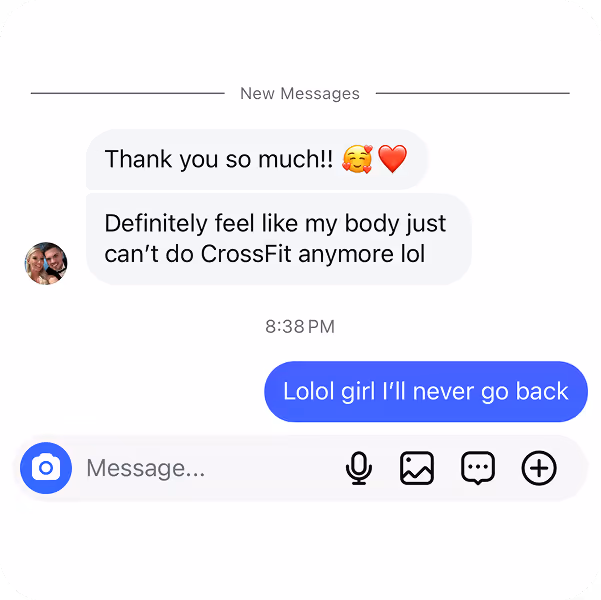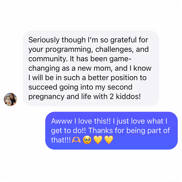 Thank you! I was doing CrossFit for 7-8 years and I started following you on instagram when I was pregnant with my first and did your baby momma workouts. I'm now 6 weeks postpartum with my second child and had full intentions of going back to CrossFit until I started seeing your lower intensity results and it honestly made me so excited to get back to working out. I was feeling burnt out from CrossFit, but because I was doing it so long I thought that was the only way 😁 I'm so happy I found you and I'm excited to follow your programs and hopefully get back into shape 😊